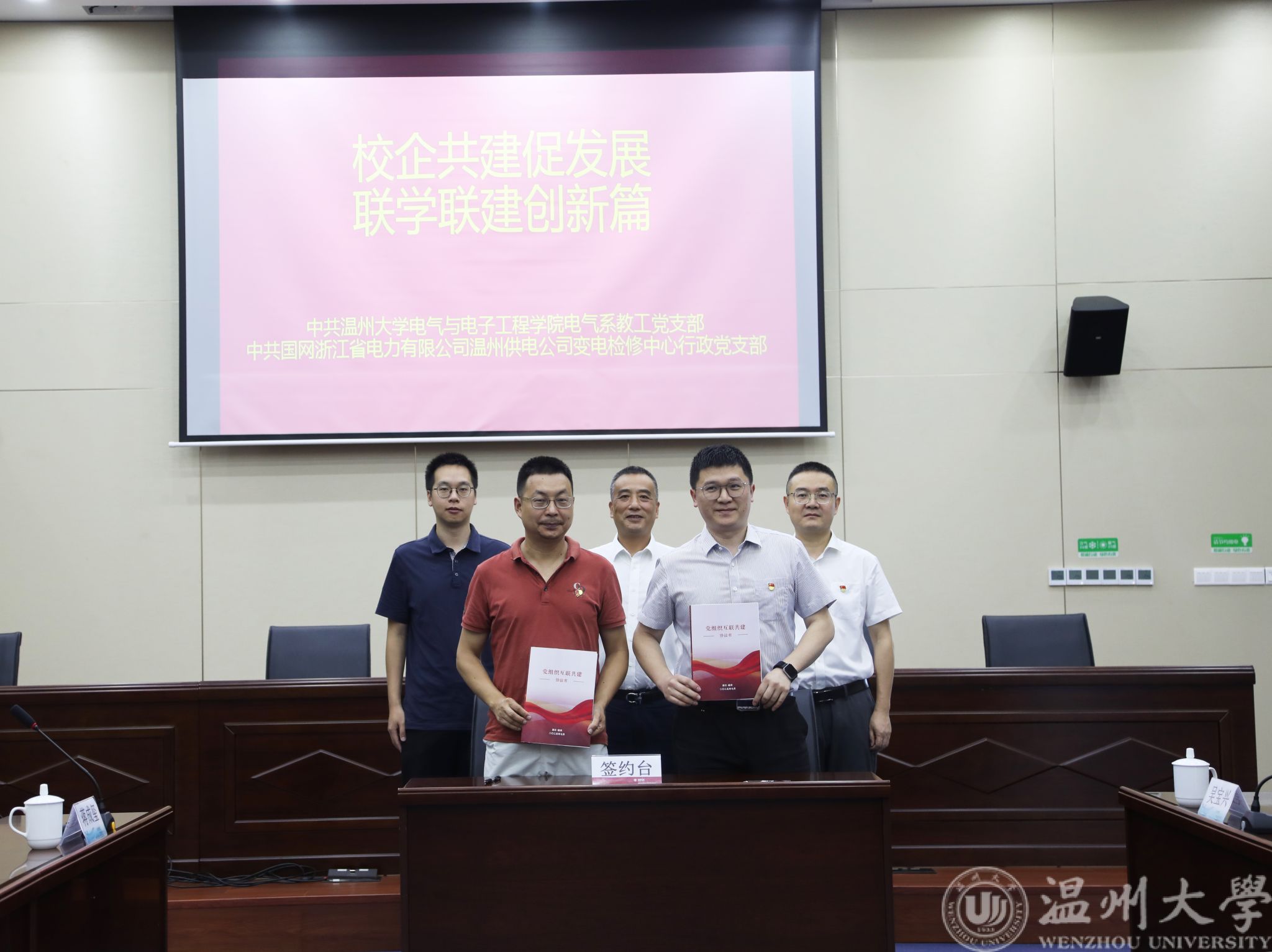 会上,双方首先围绕深入贯彻中央八项规定精神学习教育联合开展专题党课。李武书记结合电力行业实际,实例说明在项目合作、现场作业等工作中保持清正廉洁、求真务实作风的重要性,强调清廉务实作风是校企共育人才的“第一粒扣子”;学院相关负责人要求同学们把中央八项规定精神要求内化为实习标准,外化为温大学子的青春底色。随后,院企双方续签了“党组织互联共建协议书”,升级了“红色充电站”人才共育清单:创建了“电亮先锋·劳模导师团”,8名中心技术专家受聘为温大校外讲师;共建“现场+云端AI”双课堂,每月推出1次检修技术微党课;建立党员教师与企业导师“双导师”制,全过程跟踪学生实习、科研和就业。