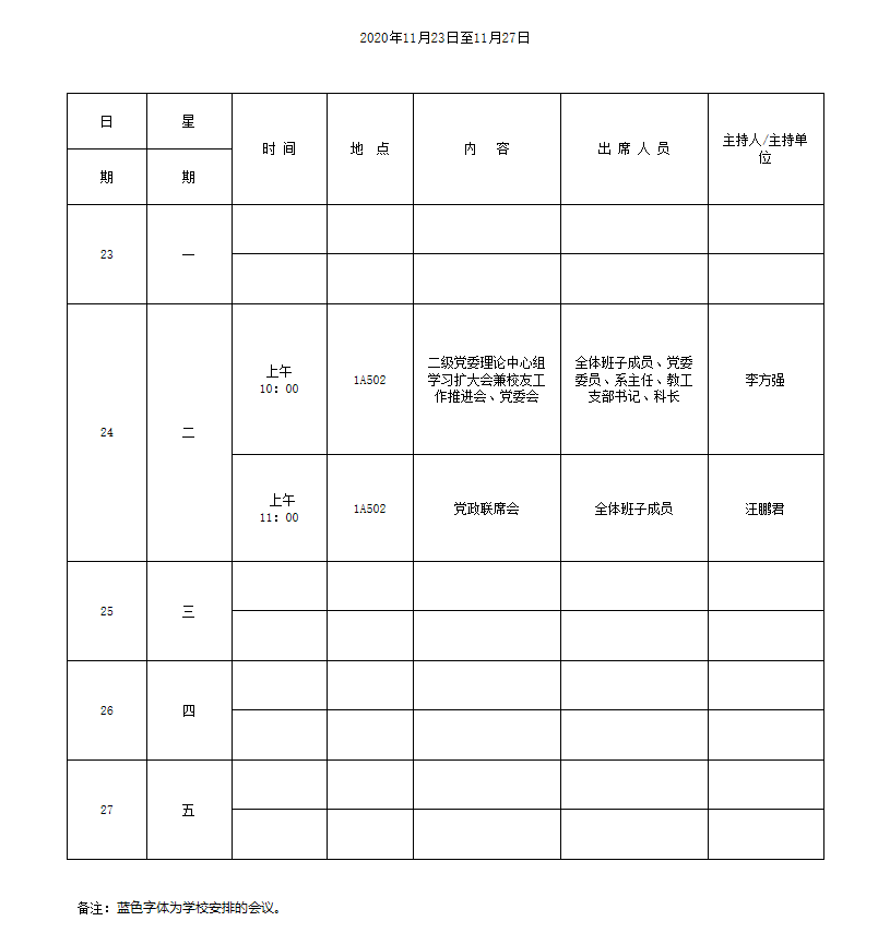 学院第11周行事历
