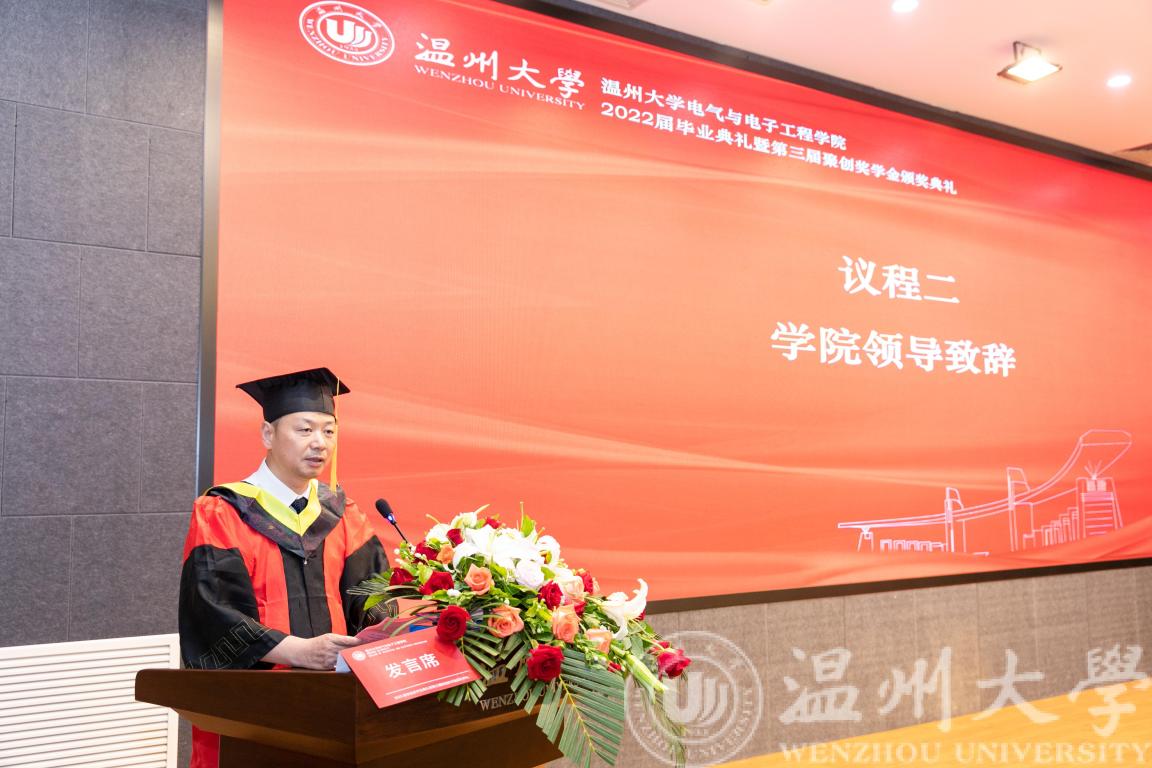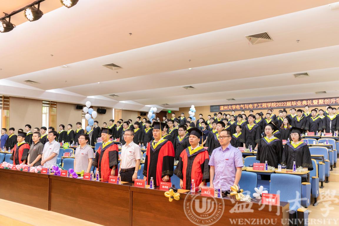 六月蝉鸣,盛夏别离,又到一年毕业季。6月21日下午14:45,17吃瓜网 2022届毕业生毕业典礼暨第三届聚创奖学金颁奖典礼于17吃瓜网 南校区岩松堂步青厅圆满举行。学院院长汪鹏君,党委书记李方强,副院长朱翔鸥、陈孝敬、朱海永,党委副书记曾蓓蕾,浙江聚创公司董事长、学院聚创奖学金发起人吴桂初教授,电气系党支部书记张正江,电子系系主任庄友谊,各毕业班班主任,各科室负责人,学工办全体辅导员,以及2022届本研毕业生出席本次毕业典礼。本次毕业典礼采用线上线下相结合的方式进行。